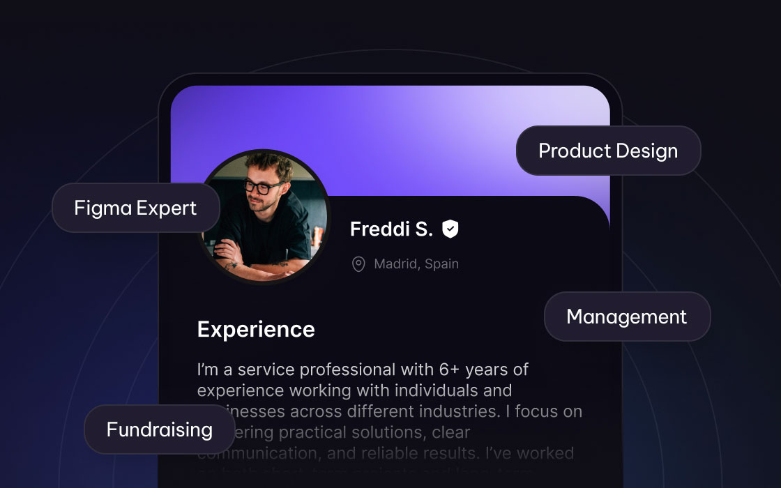 Describe what you can do in your own words. Add multiple skills, services, and experiences — without forcing everything into a traditional resume.